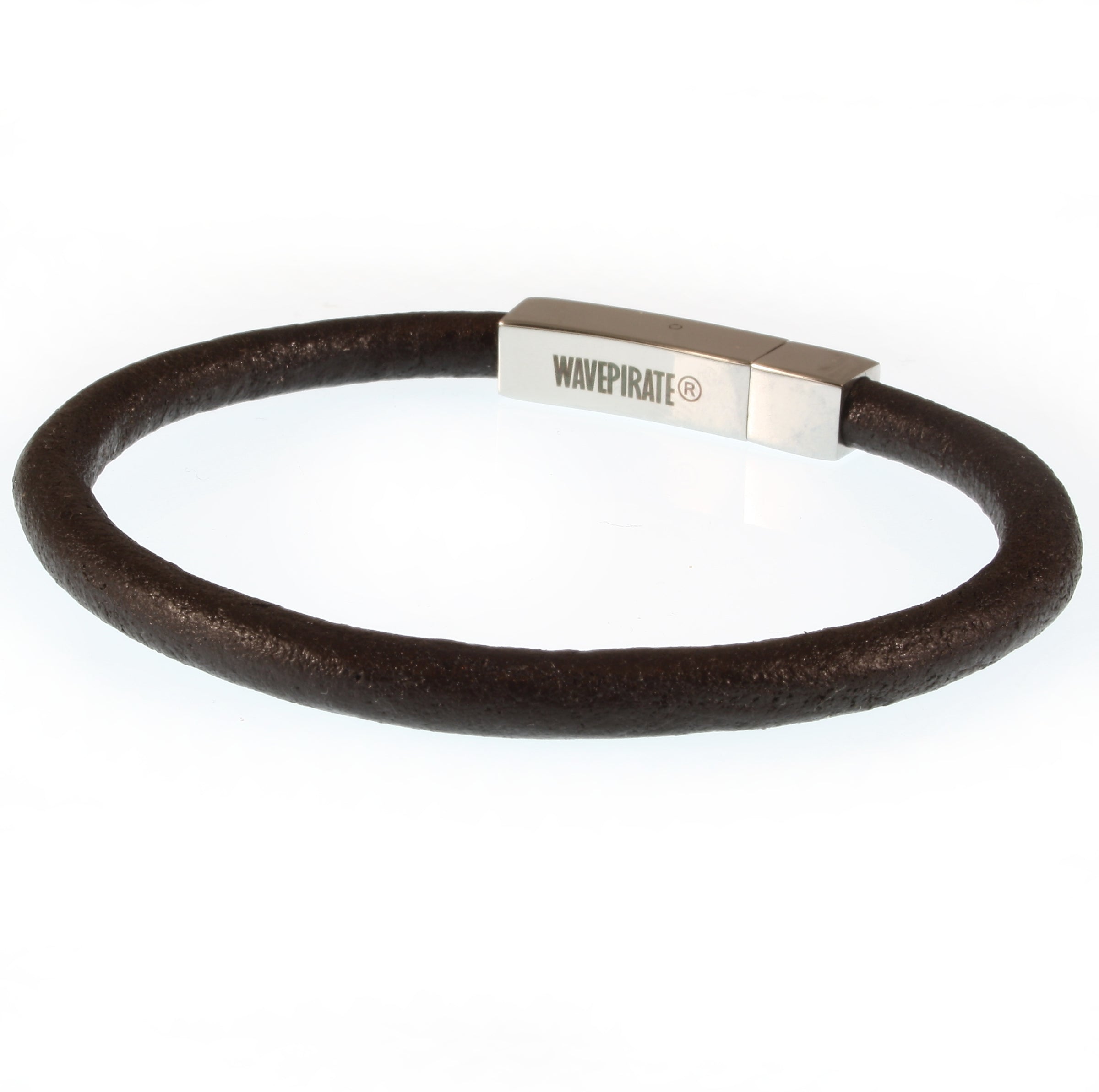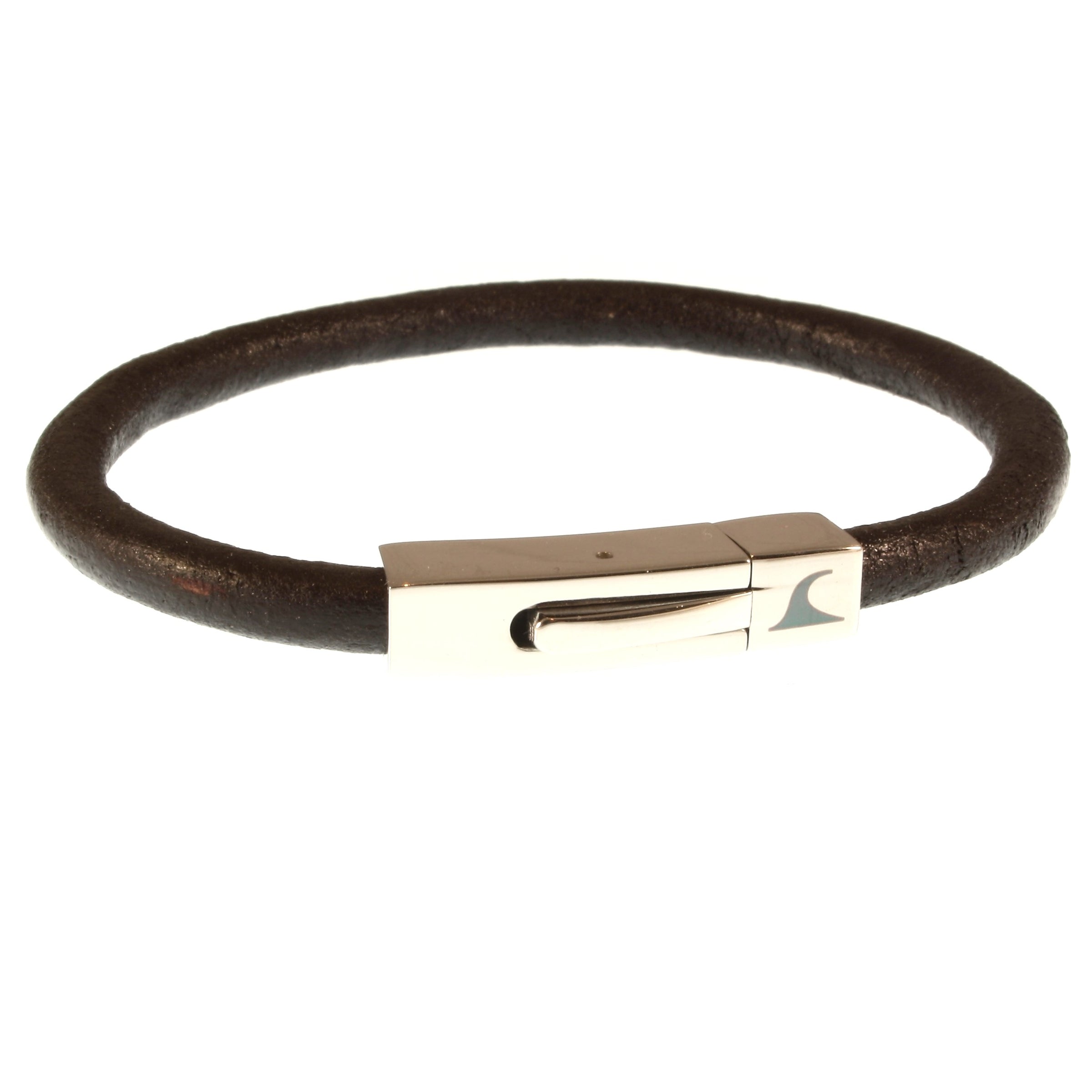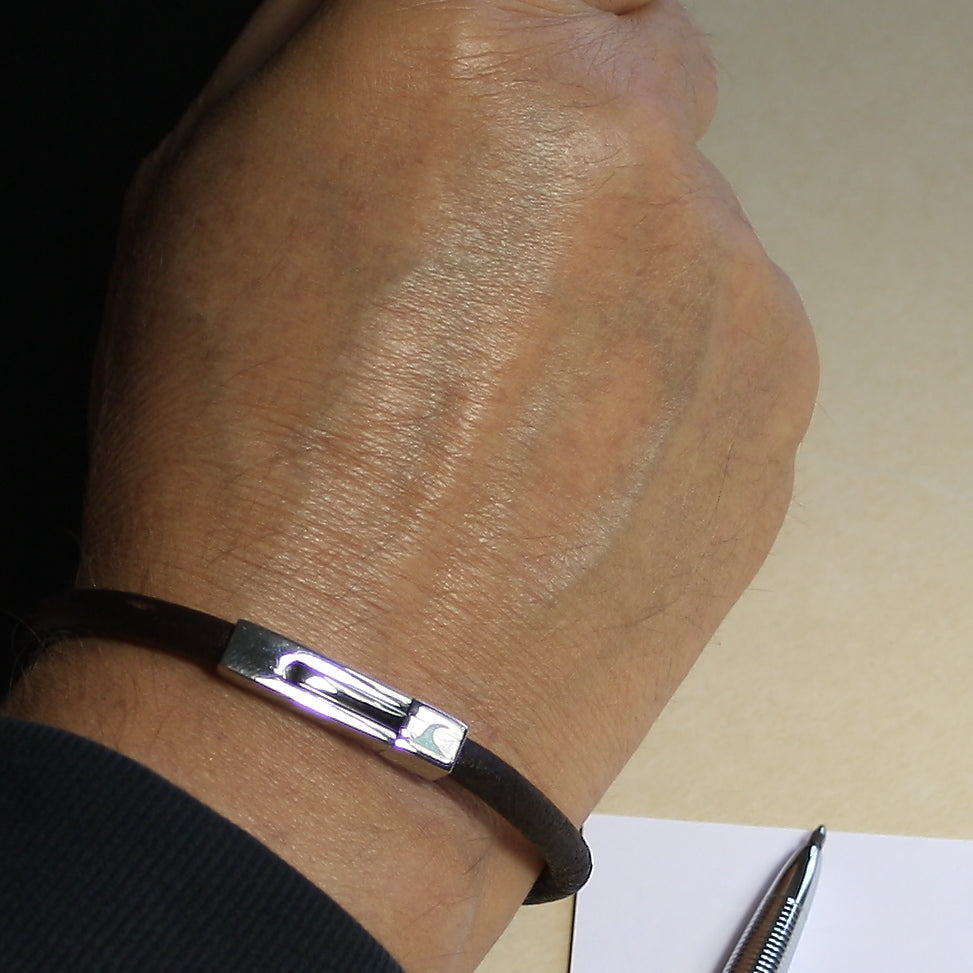 Der 5 mm dünne Riemen mit dem ausgefallenen Edelstahl-Druckverschluss ist lässig und dezent zugleich.