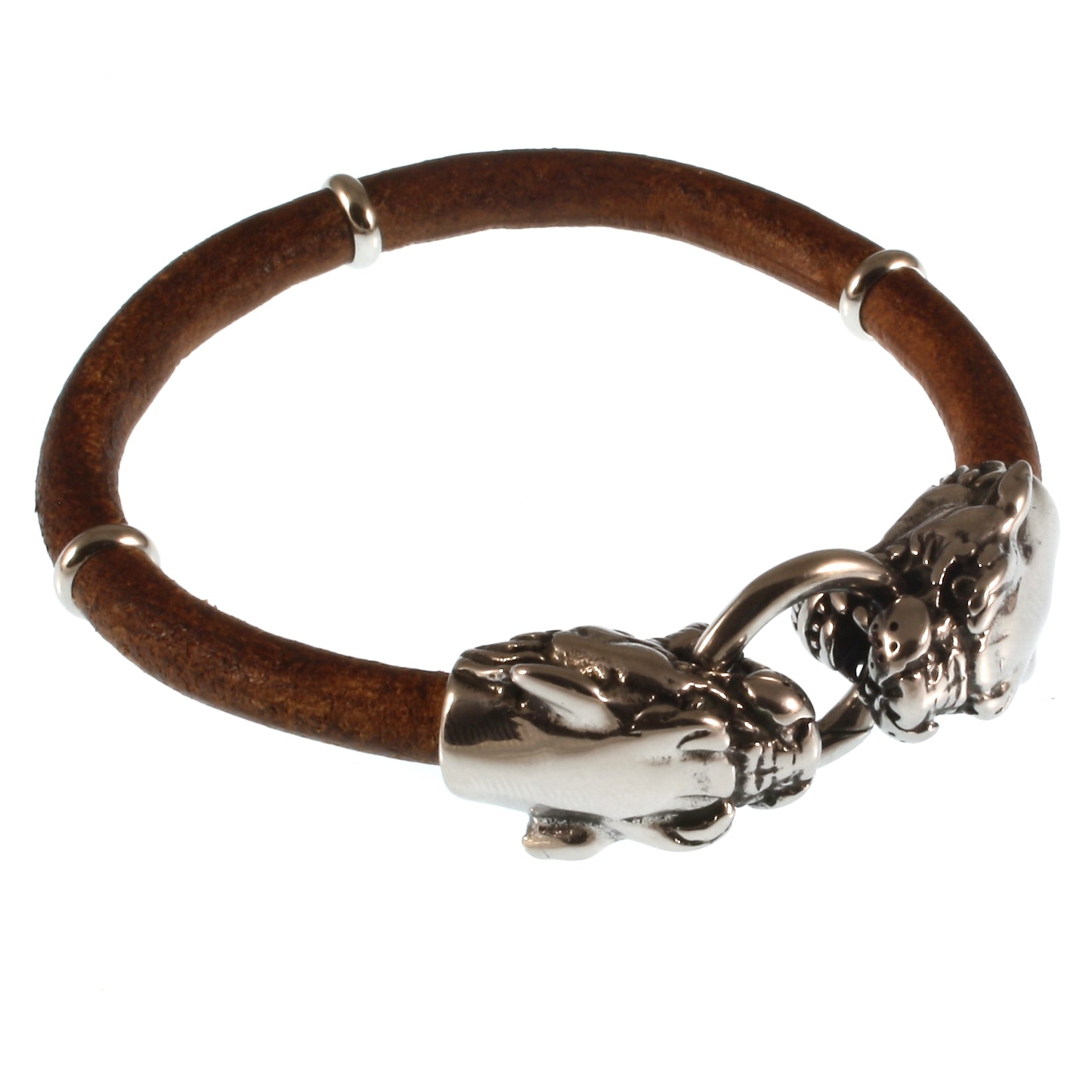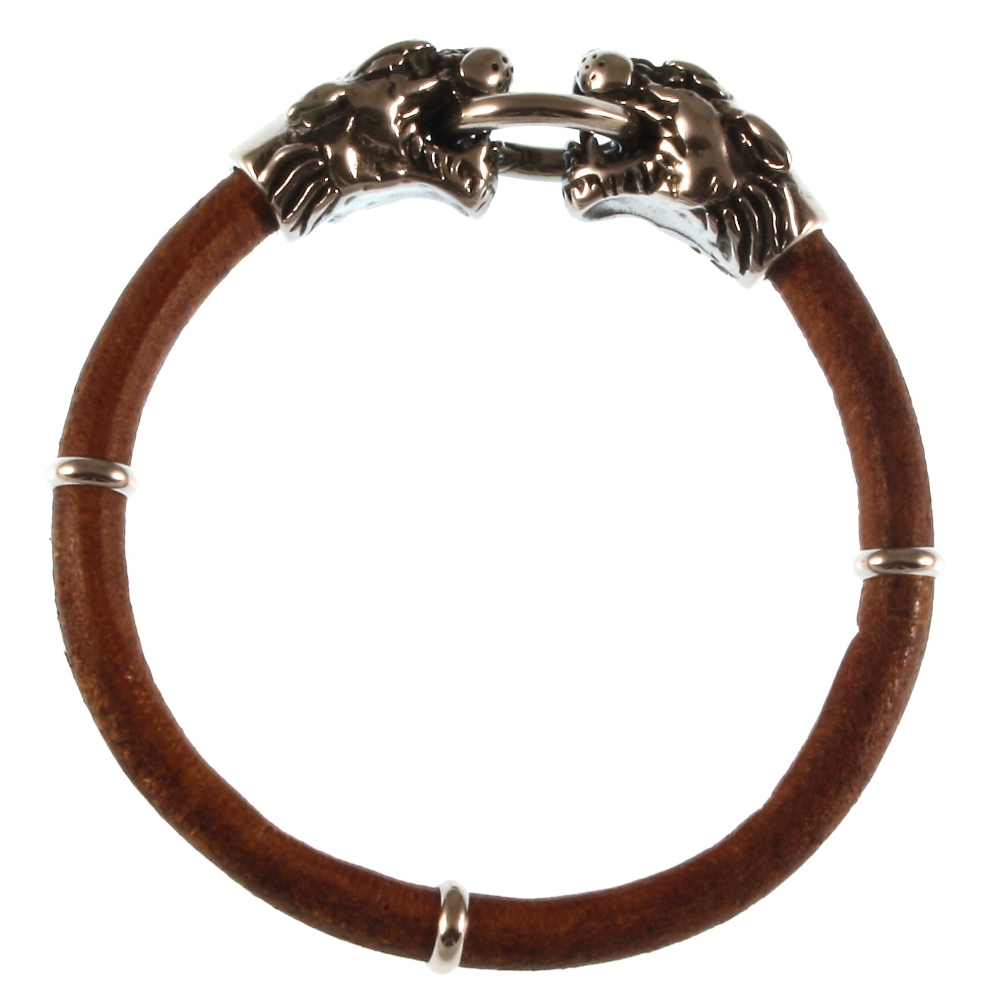 Zwei detailreich ausgearbeitete Löwenköpfe halten den Edelstahlring und damit das WAVEPIRATE Armband LION / LÖWE zusammen.