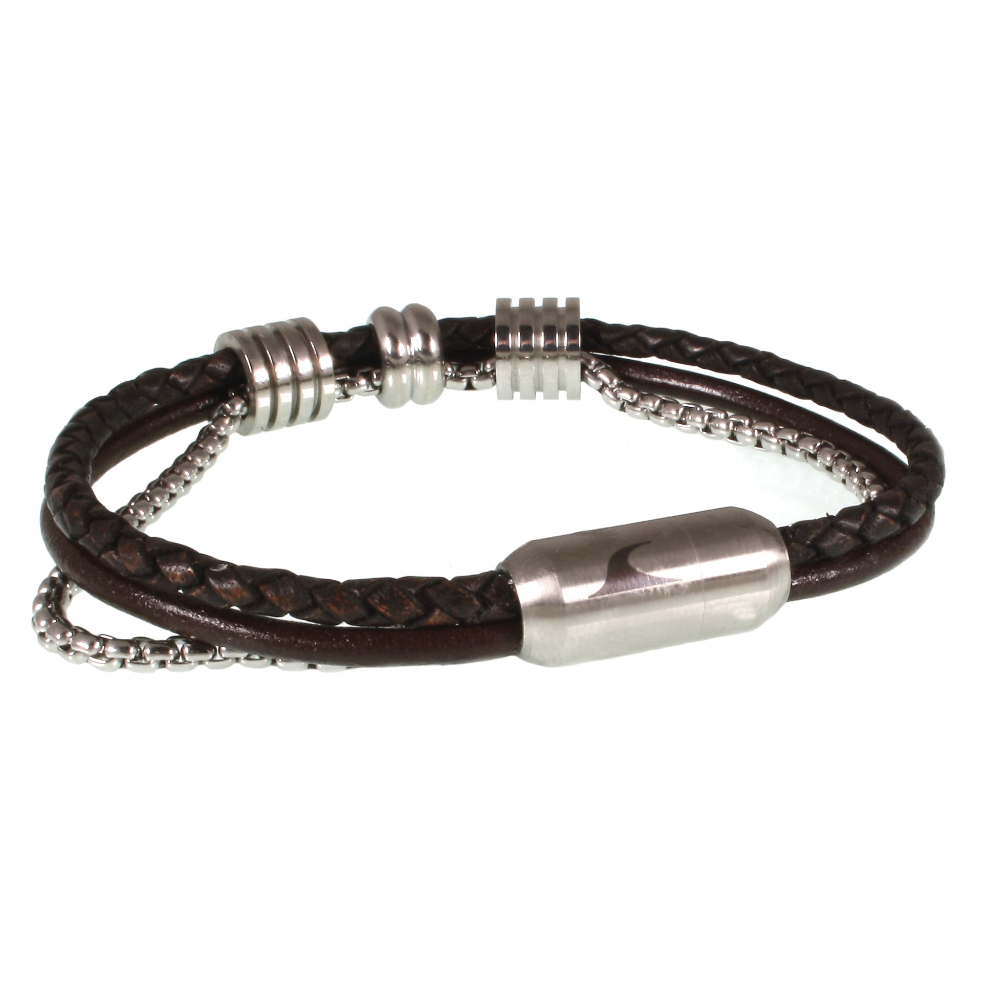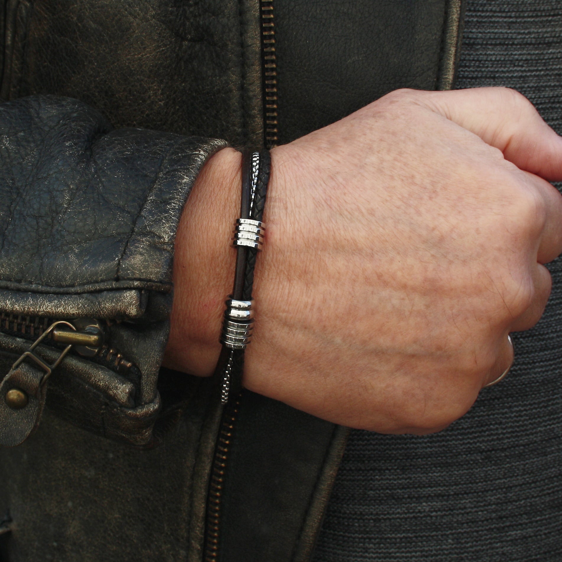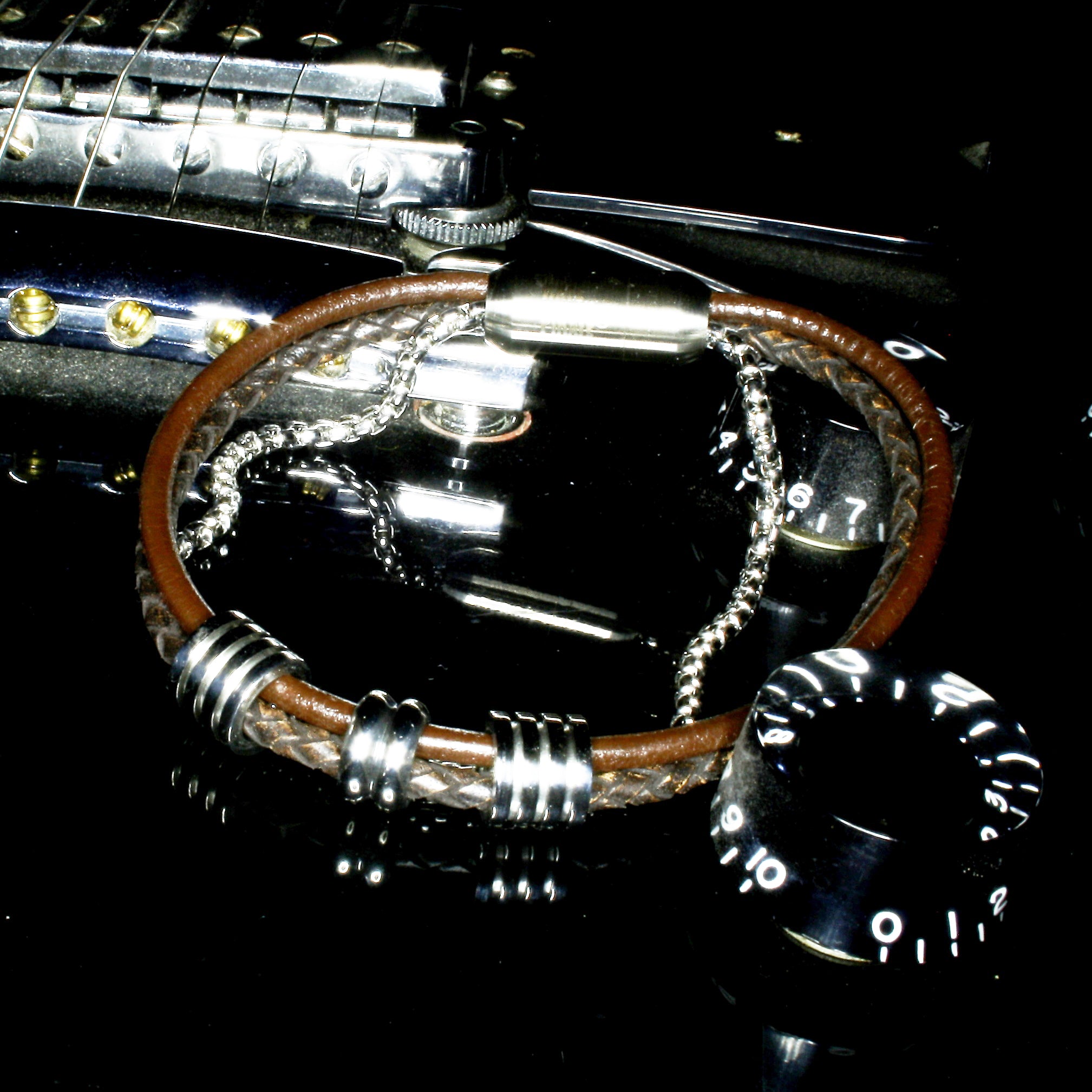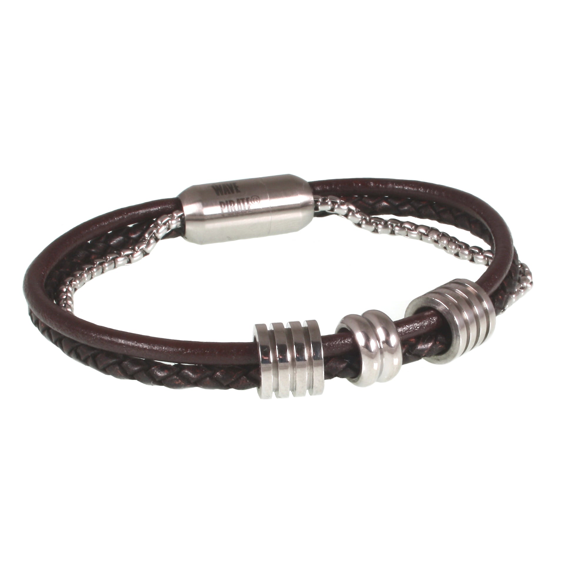 Die WAVEPIRATE Armbandserie LEX verbindet verschiedene Lederriemen - geflochten, rund, flach mit Edelstahlketten und Edelstahlcharms.