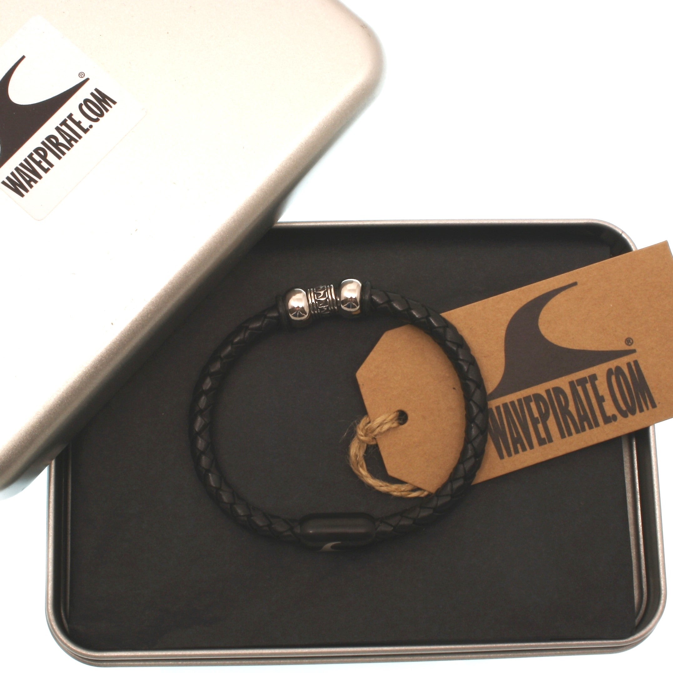 Unsere WAVEPIRATE Lederarmbänder ATOLL mit drei Edelstahlcharms und Edelstahlmagnetverschluss.