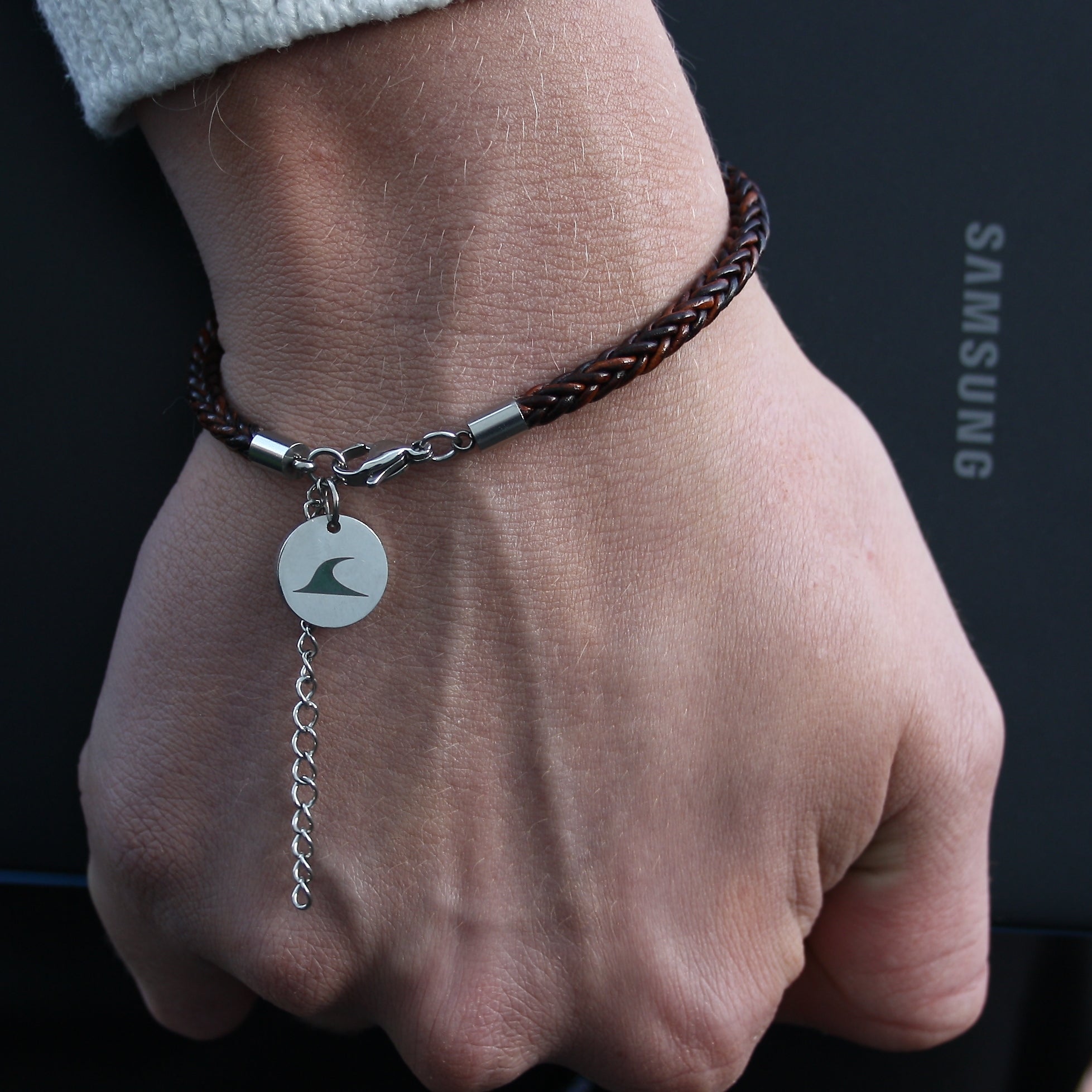 4 mm schlanke Lederarmbänder aus geflochtenem oder massivem Leder mit Edelstahl-Karabienerverschluß und 5 cm Verlängerung.