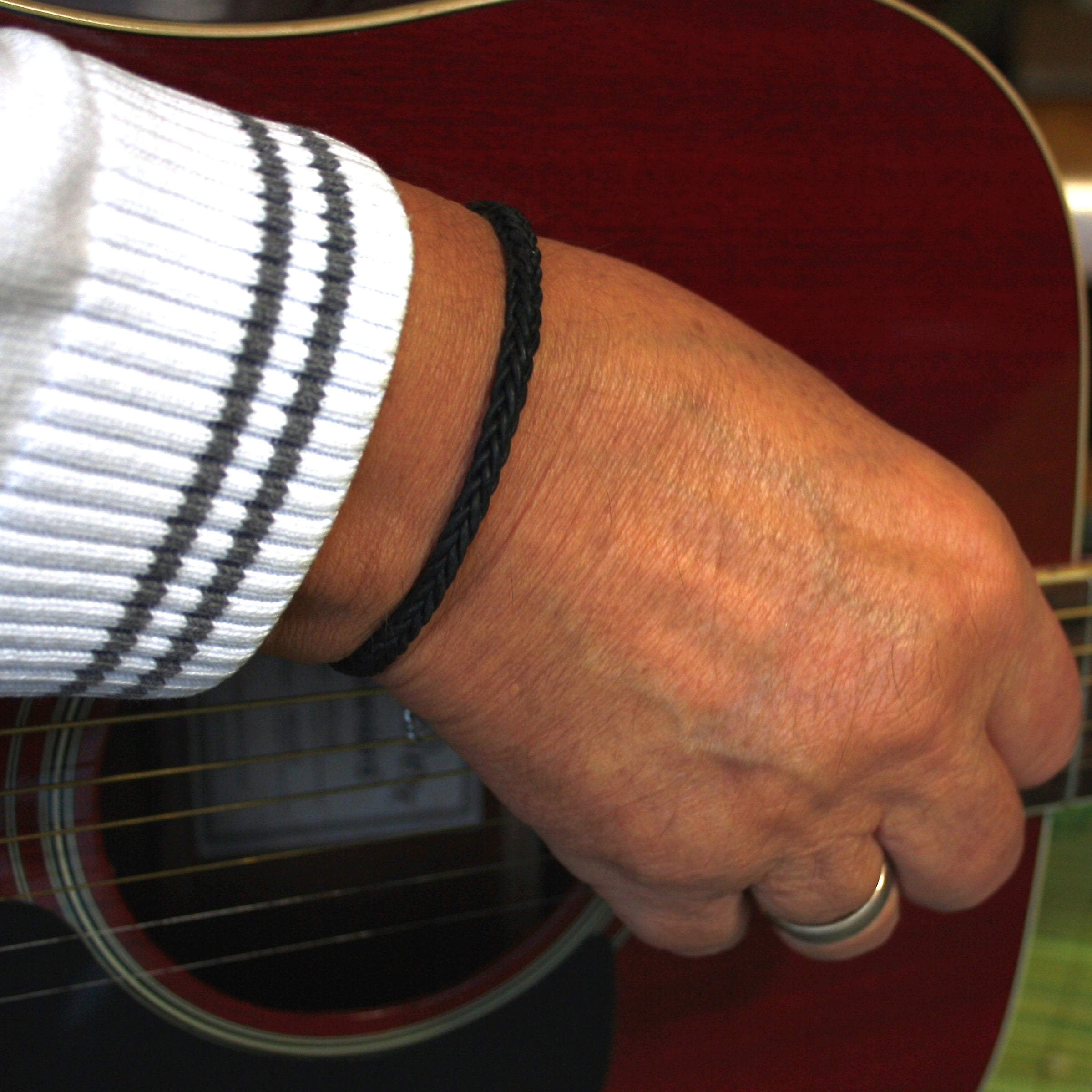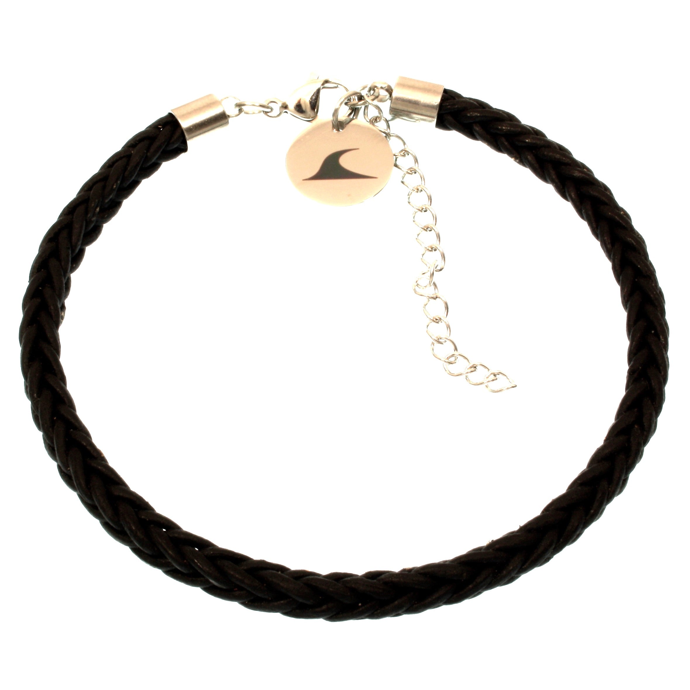 4 mm schlanke Lederarmbänder aus geflochtenem oder massivem Leder mit Edelstahl-Karabienerverschluß und 5 cm Verlängerung.