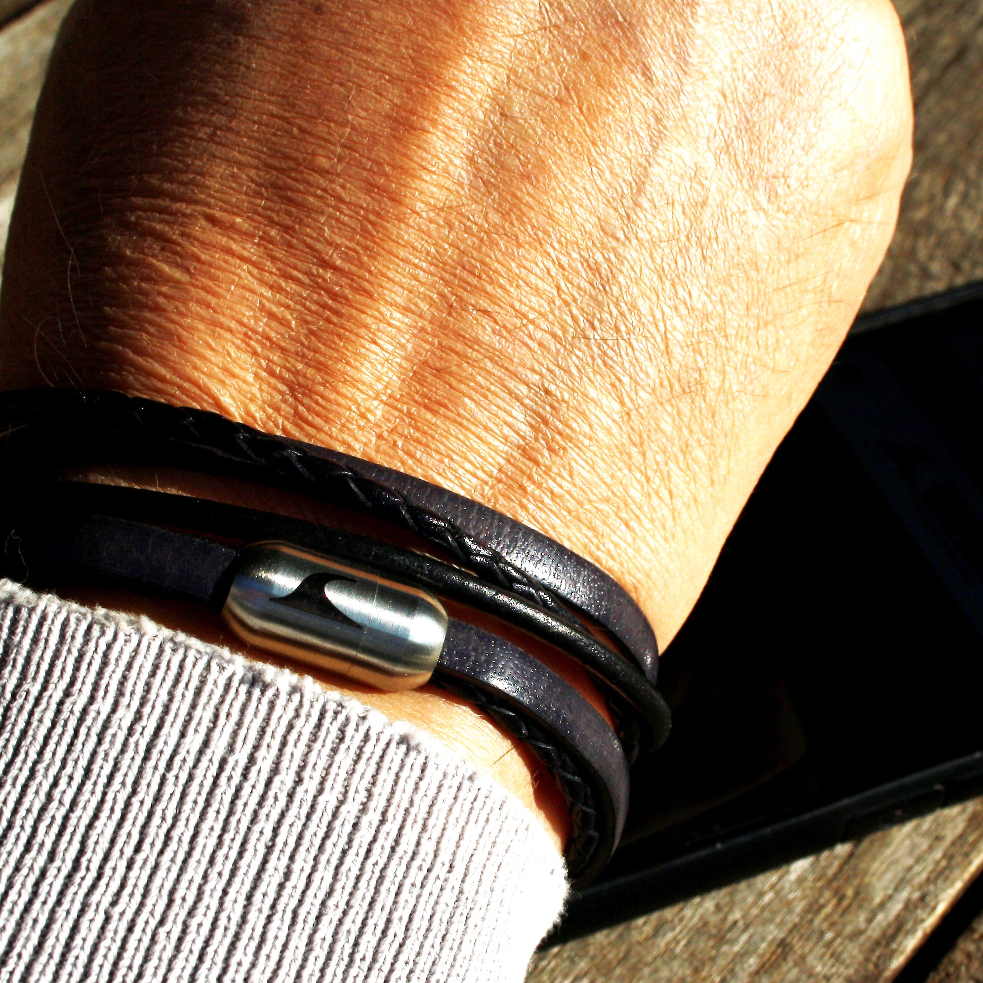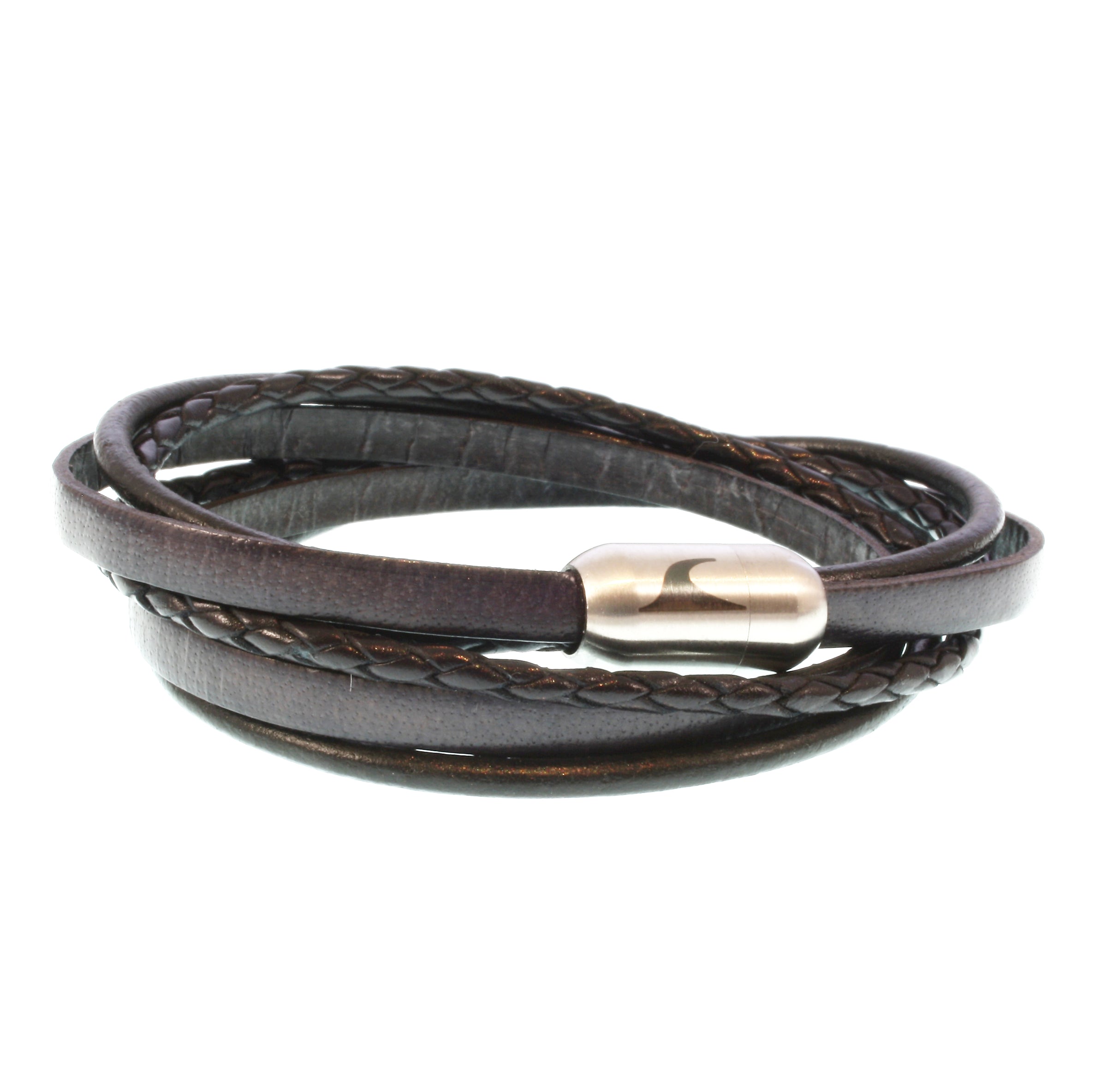 Einige Armbänder bestehen aus verschiedenfarbigen Lederriemen wie auch aus der Kombination von Lederriemen und einer Edelstahlkette.