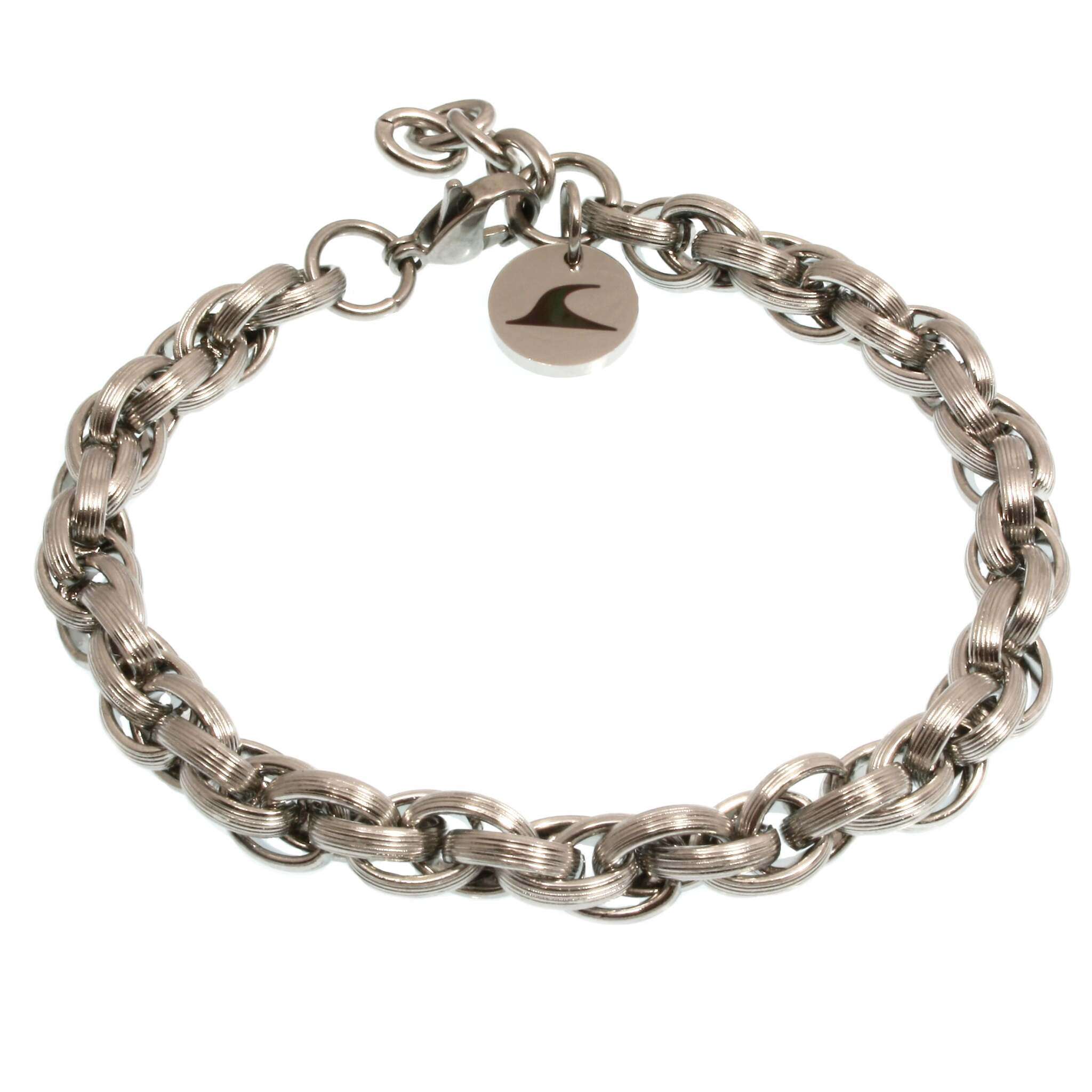 In der gerillten Oberfläche der Glieder bricht das Licht bei jeder Bewegung vom WAVEPIRATE Edelstahlarmband SLING lebhaft anders.