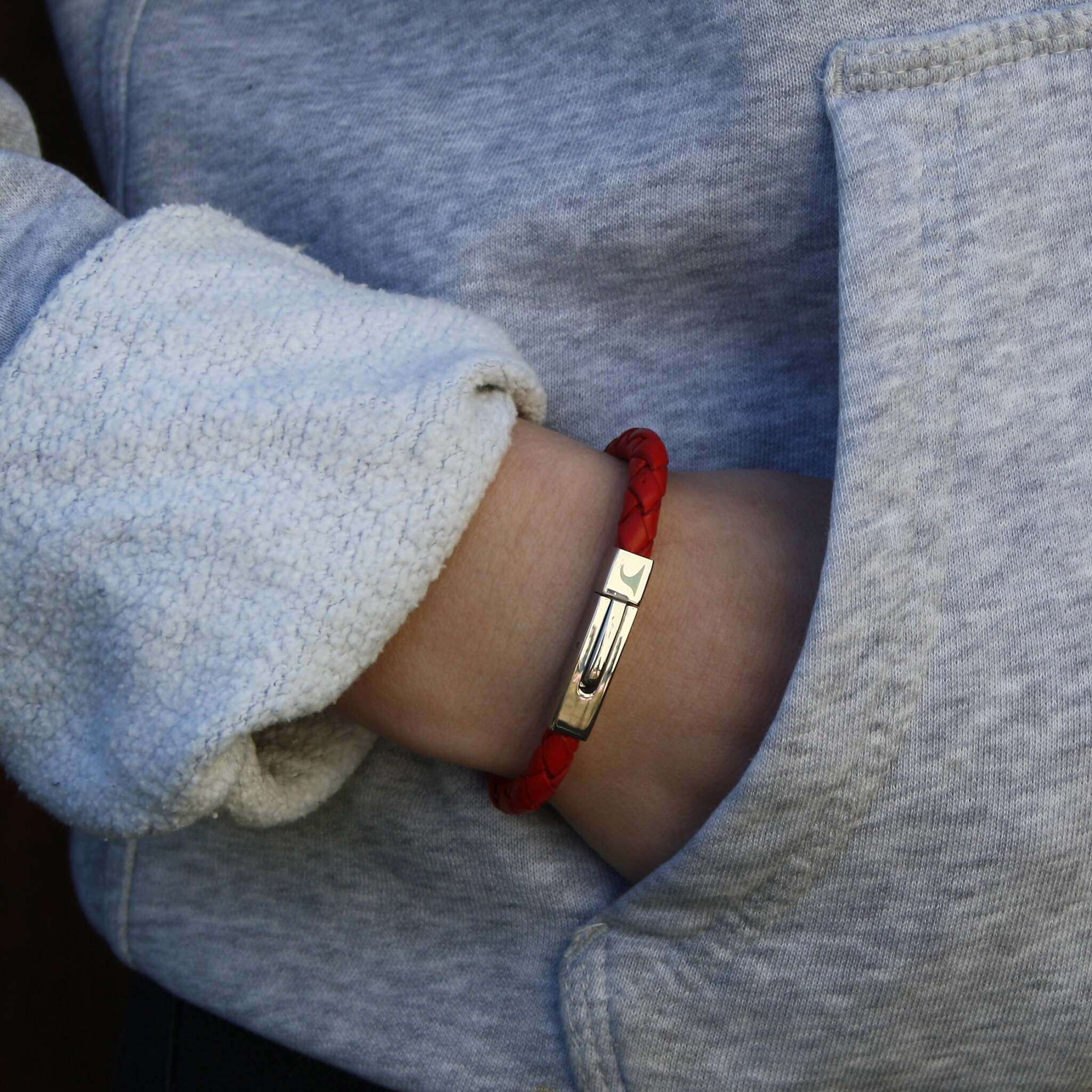 Der 5 mm dünne Riemen mit dem ausgefallenen Edelstahl-Druckverschluss ist lässig und dezent zugleich.