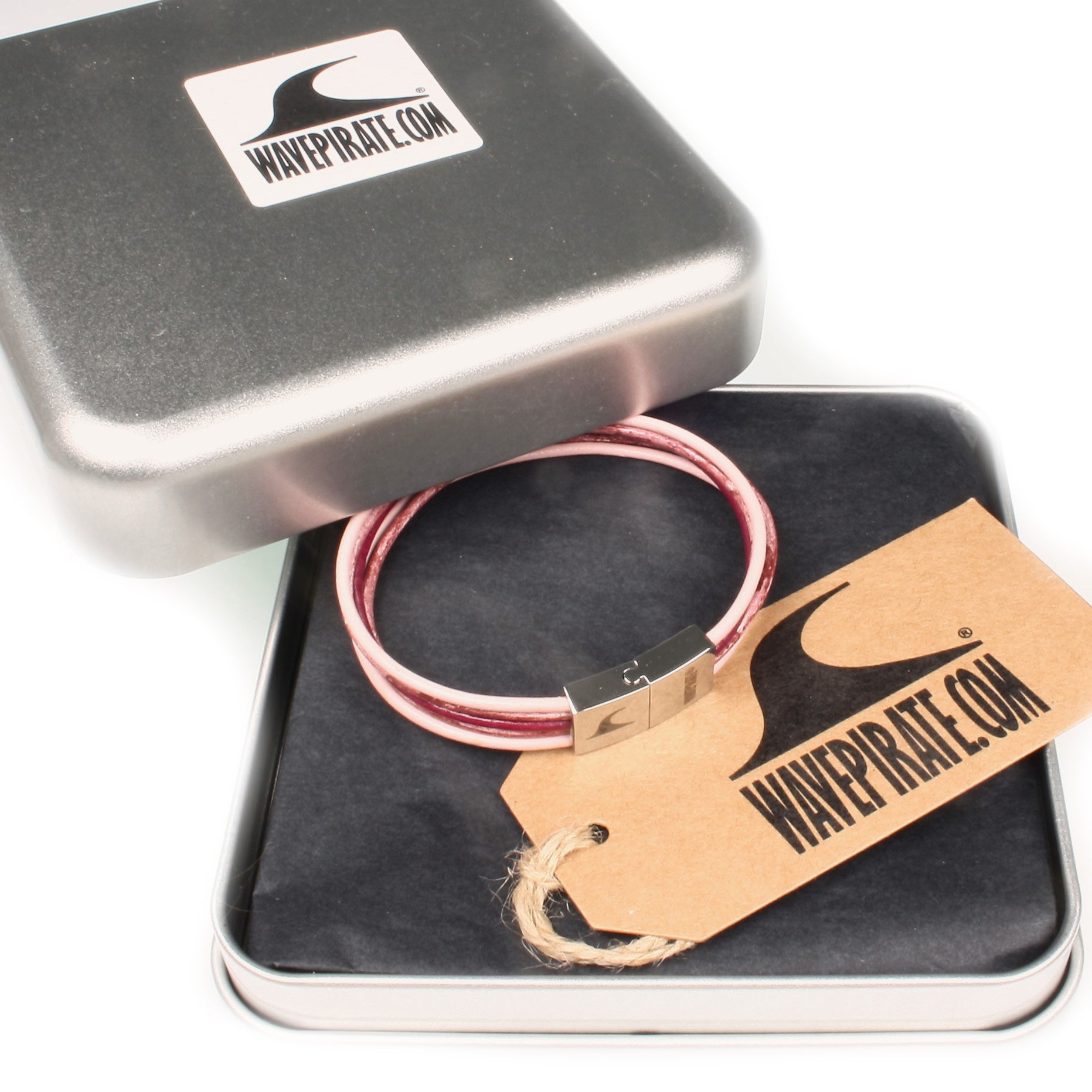 Unser handgefertigtes WAVEPIRATE Lederarmband DONNA gibt es in verschiedenen Farben - sowohl uni als auch multicolor. Der elegante, flache Edelstahlverschluss stylt dieses Armband zu einem Hingucker, ist leicht zu bedienen und hält garantiert.