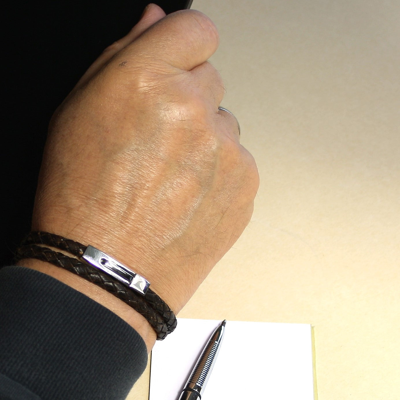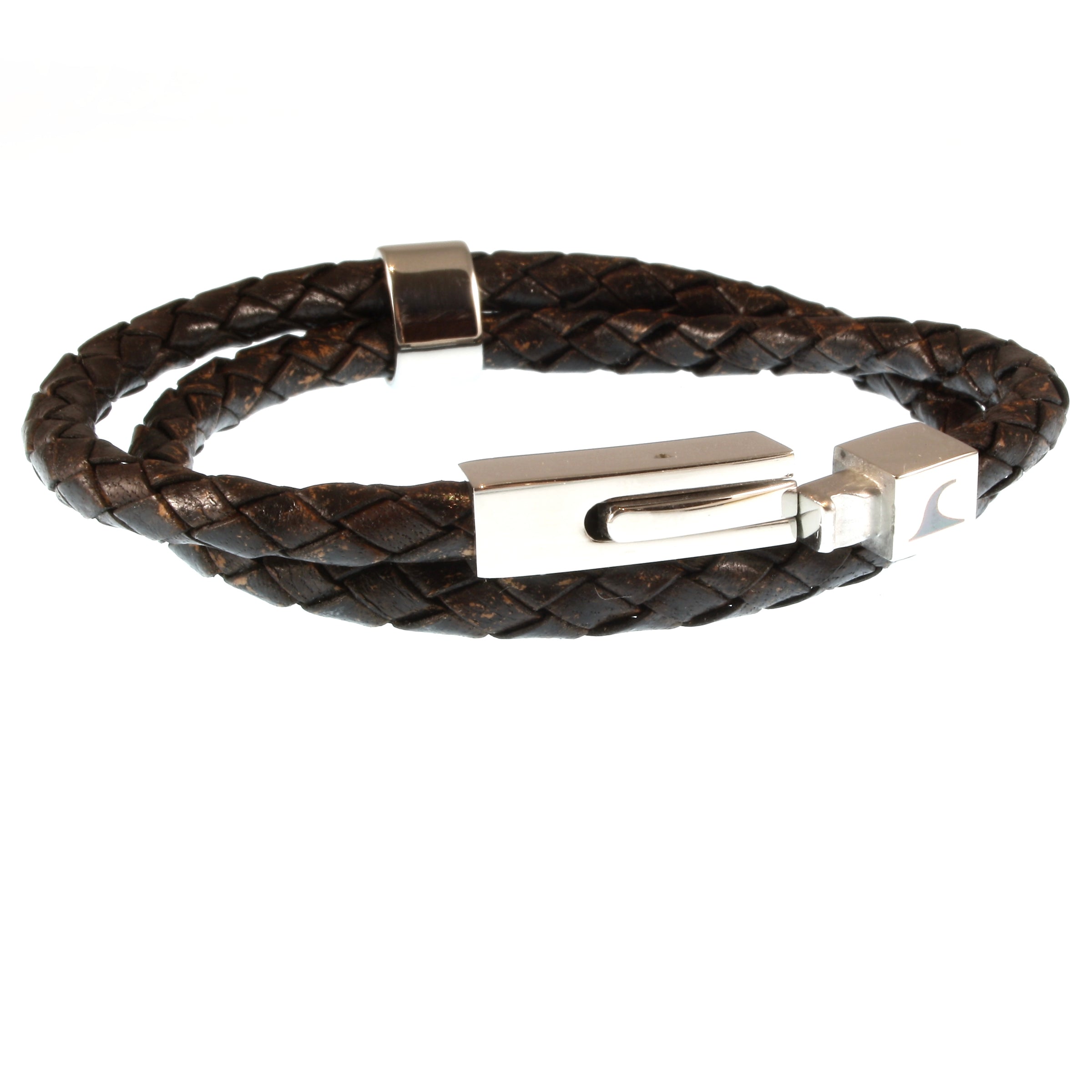Der 5 mm dünne Riemen mit dem ausgefallenen Edelstahl-Druckverschluss ist lässig und dezent zugleich.