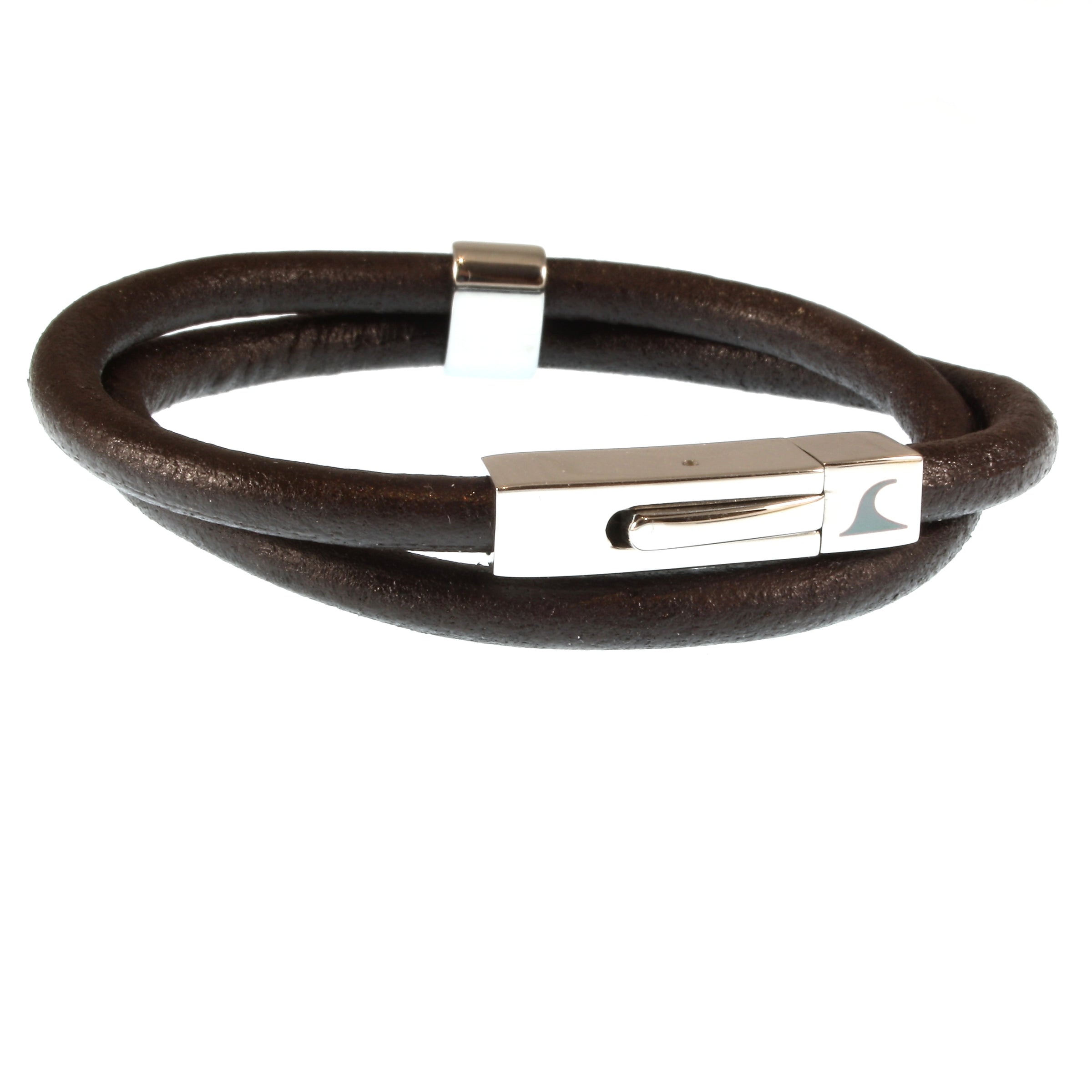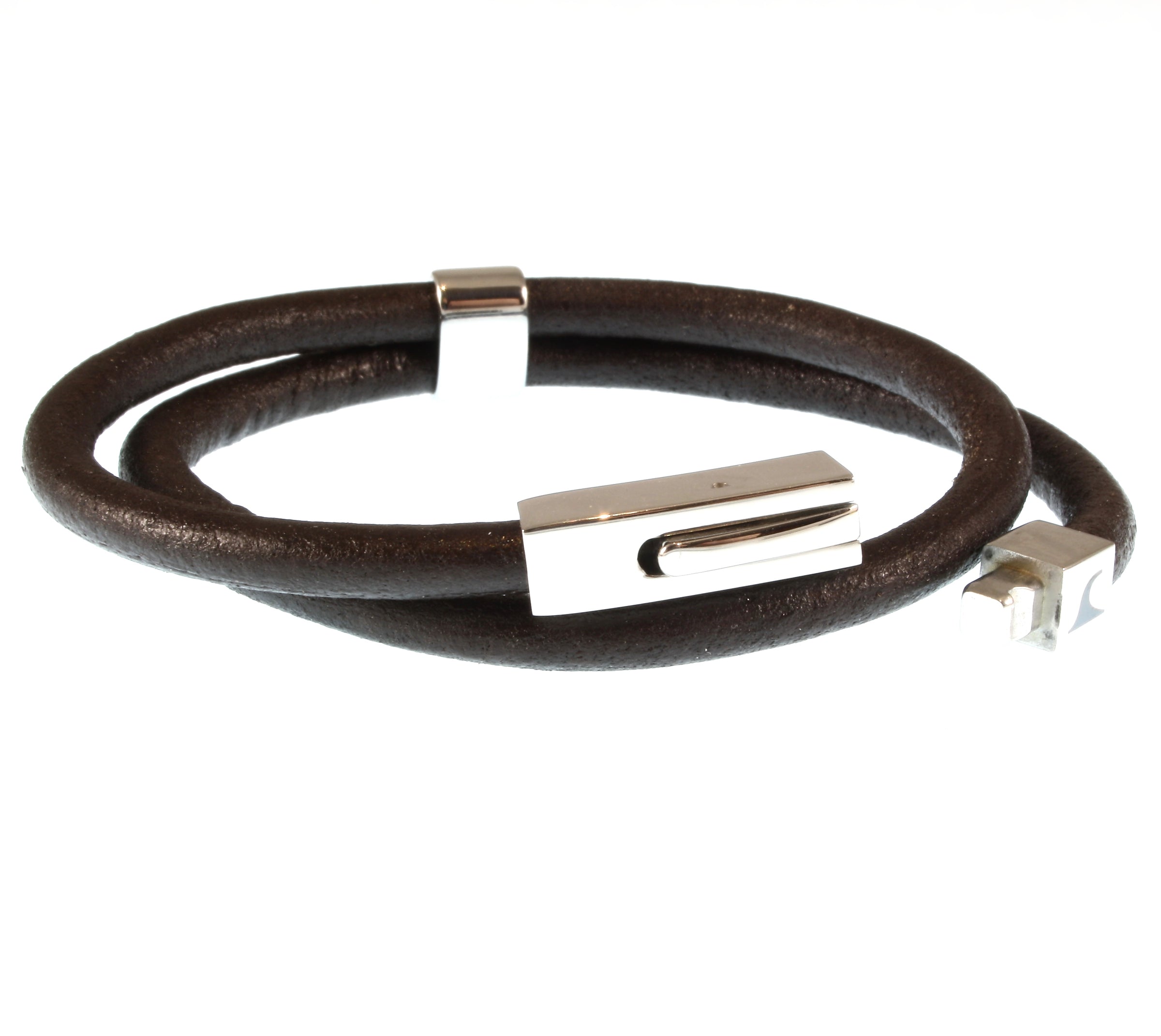 Der 5 mm dünne Riemen mit dem ausgefallenen Edelstahl-Druckverschluss ist lässig und dezent zugleich.