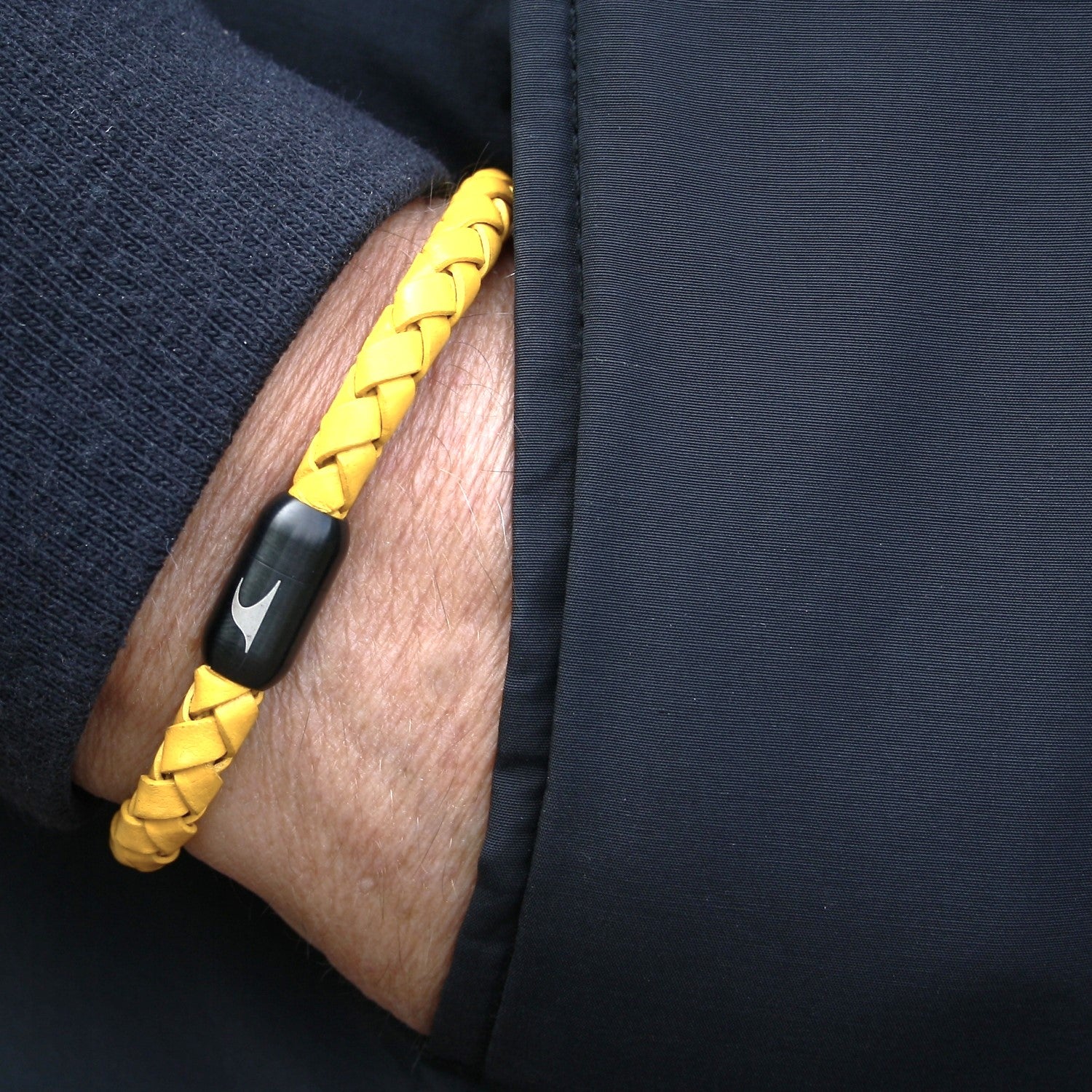 Lederarmband STEEL F Gelb Schwarz
