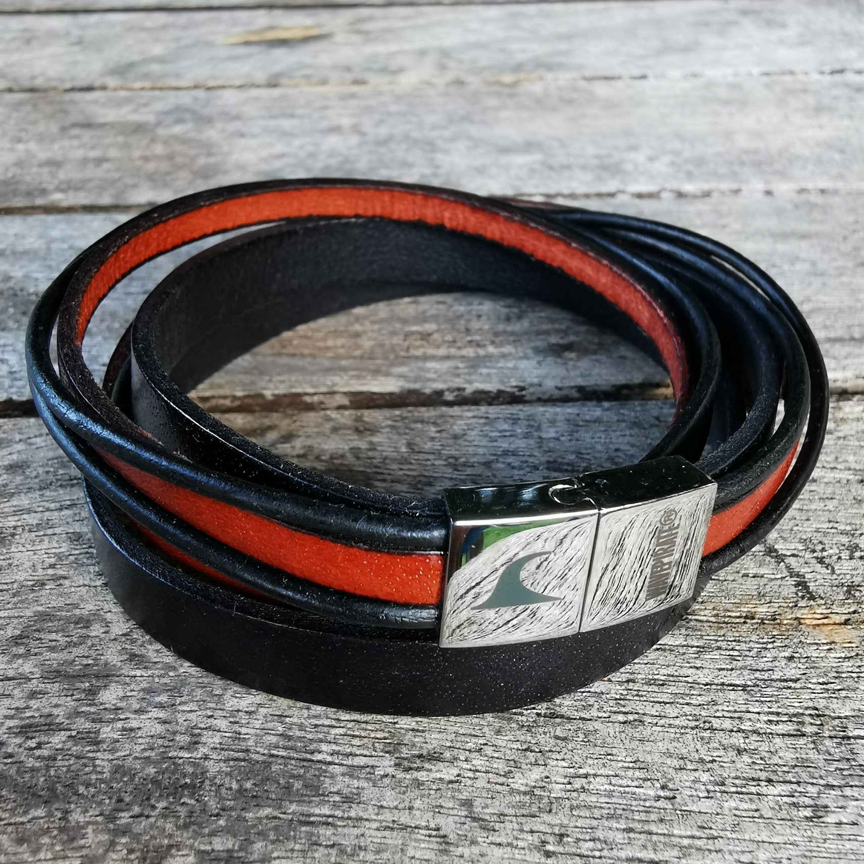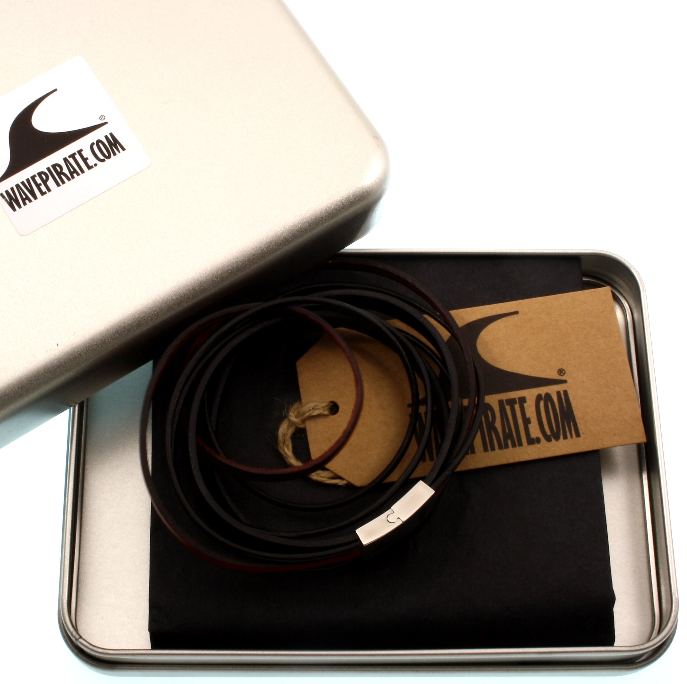 Zwei verschiedene Breiten von feinstem italienischem Premium-Qualitätsleder und zwei Rundriemen in uni oder verschiedenen Farben kombiniert. Doppelt um Dein Handgelenk zu wickeln. Der flache Edelstahl-Magnetschiebeverschluss rundet die klaren Linien ab.