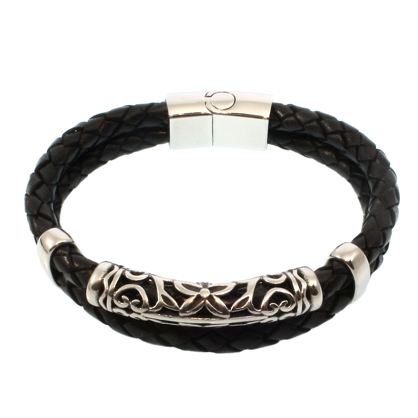 6 mm geflochtener Rindslederriemen mit Edelstahl-Magnet-Steckverschluss - handgefertigt