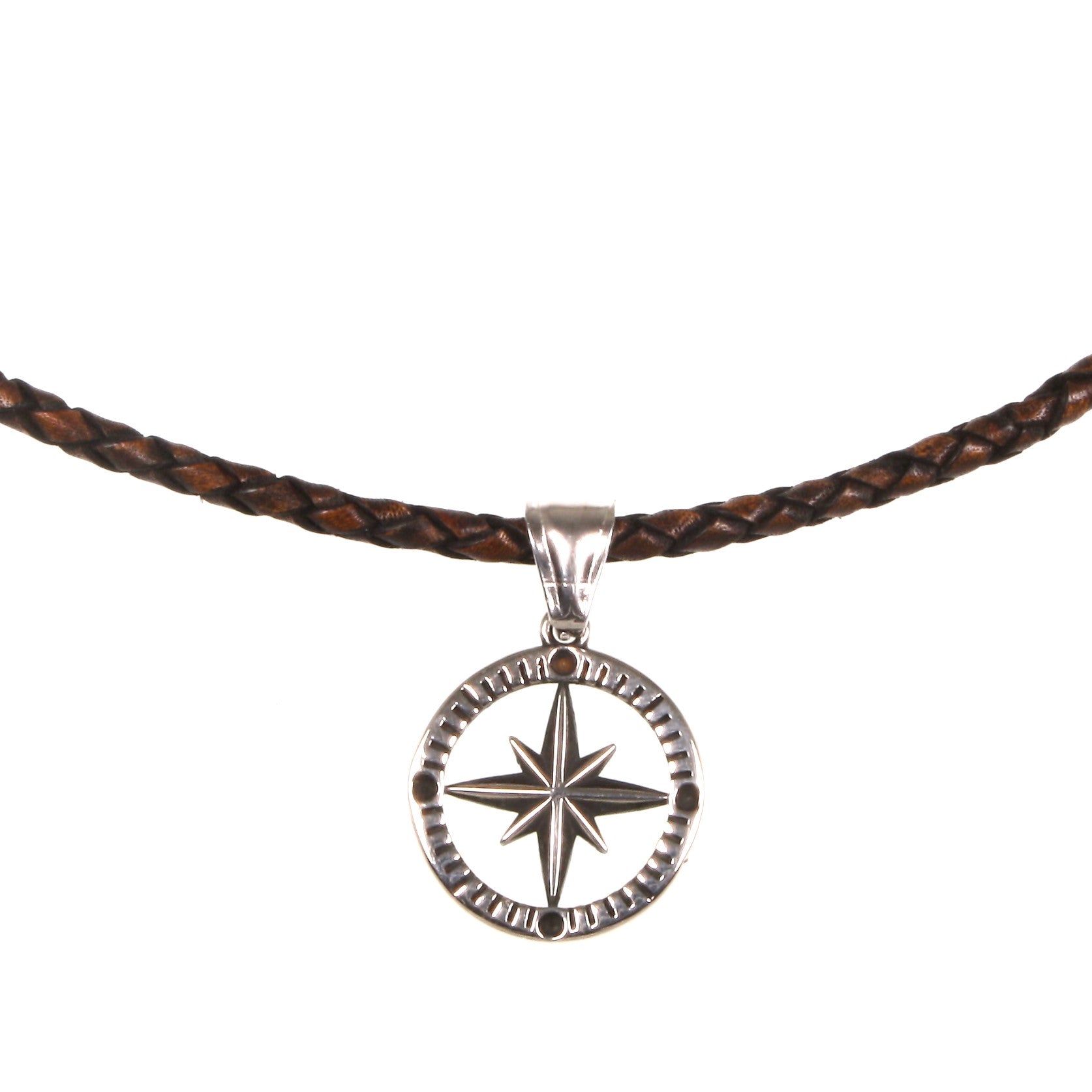 Diese WAVEPIRATE Lederhalskette KOMPASS aus einem massiven Lederriemen mit 3 mm Durchmesser und dem Edelstahlanhänger der Kompass und Windrose vereint, ist ein Accessoire oder Geschenk für Weltenbummler und alle, die gern in die Ferne schweifen.