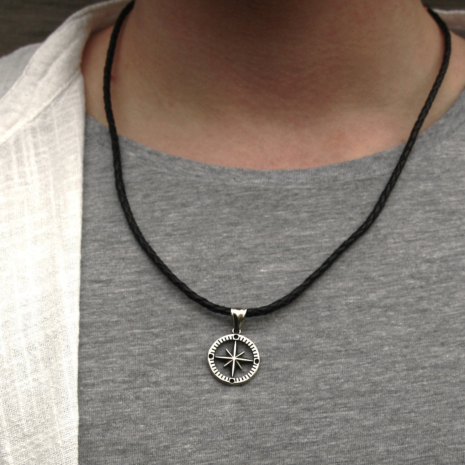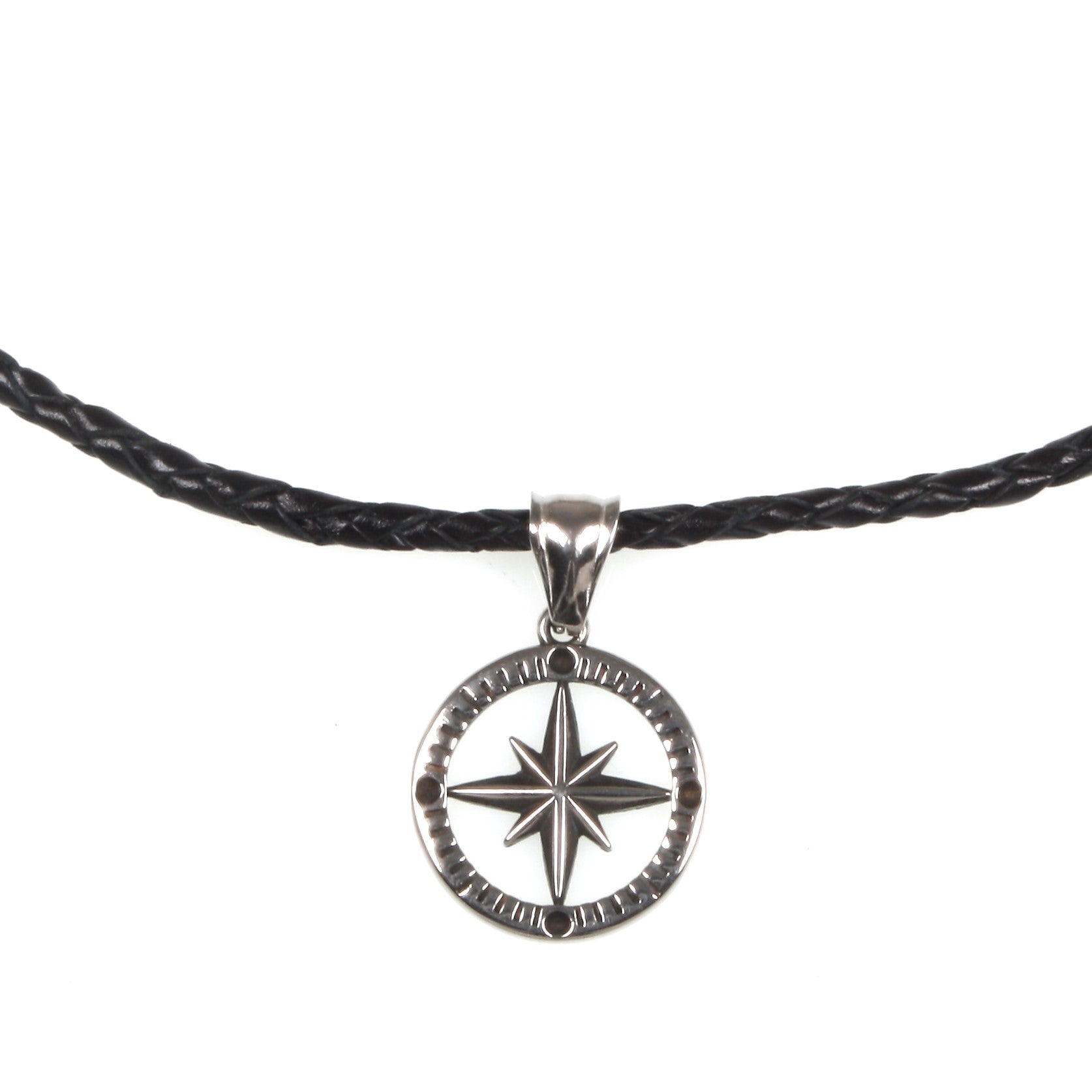 Diese WAVEPIRATE Lederhalskette KOMPASS aus einem massiven Lederriemen mit 3 mm Durchmesser und dem Edelstahlanhänger der Kompass und Windrose vereint, ist ein Accessoire oder Geschenk für Weltenbummler und alle, die gern in die Ferne schweifen.