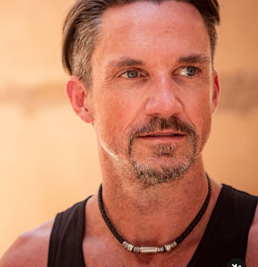 Sechs frei bewegliche Charms im tibetanischen Style zieren die WAVEPIRATE Lederhalskette CHARM.