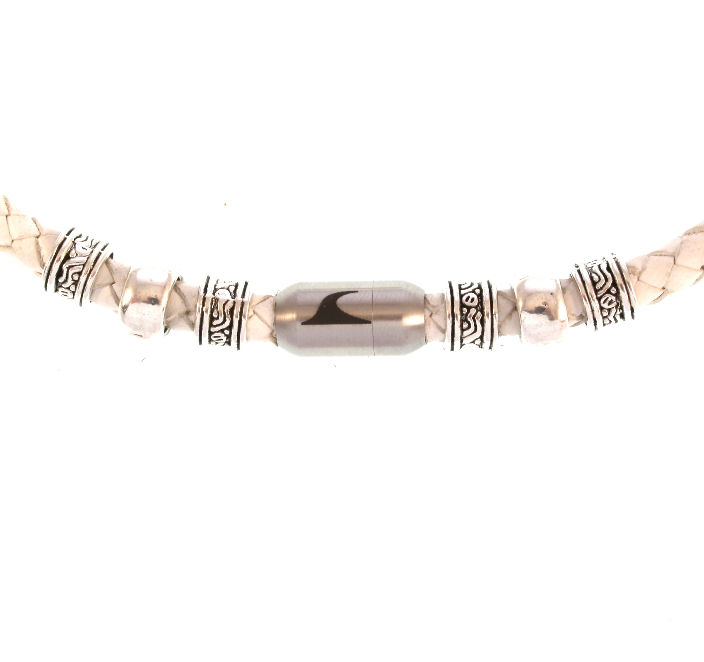 Sechs frei bewegliche Charms im tibetanischen Style zieren die WAVEPIRATE Lederhalskette CHARM.