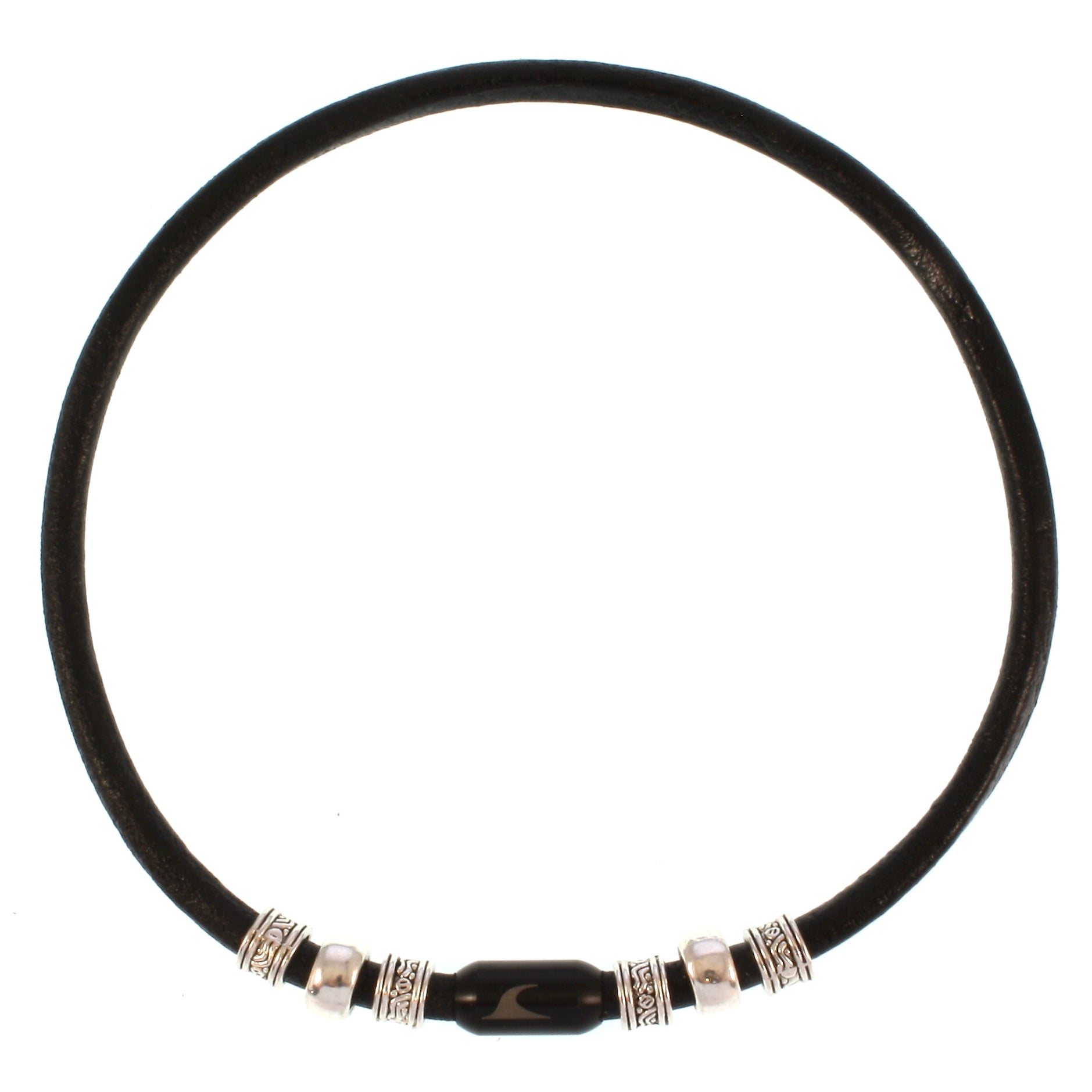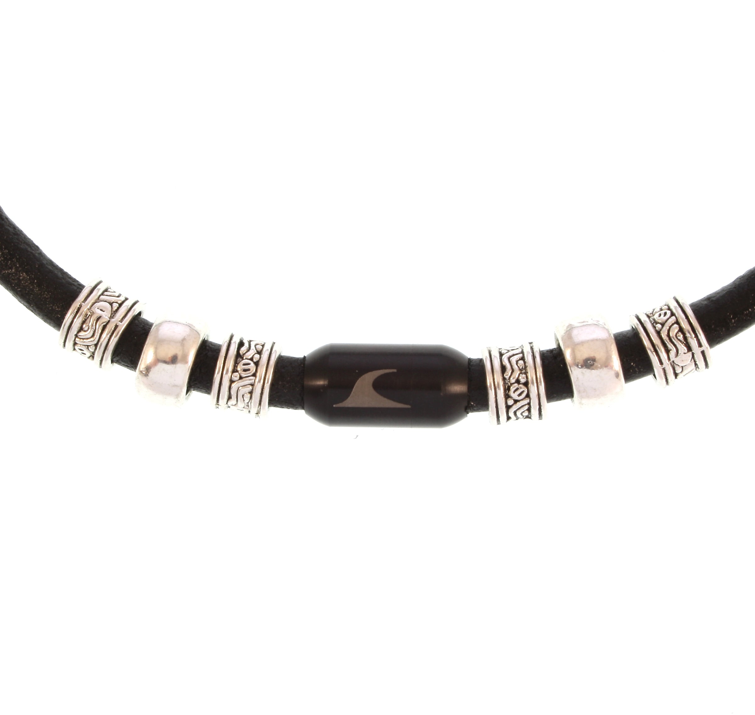Sechs frei bewegliche Charms im tibetanischen Style zieren die WAVEPIRATE Lederhalskette CHARM.