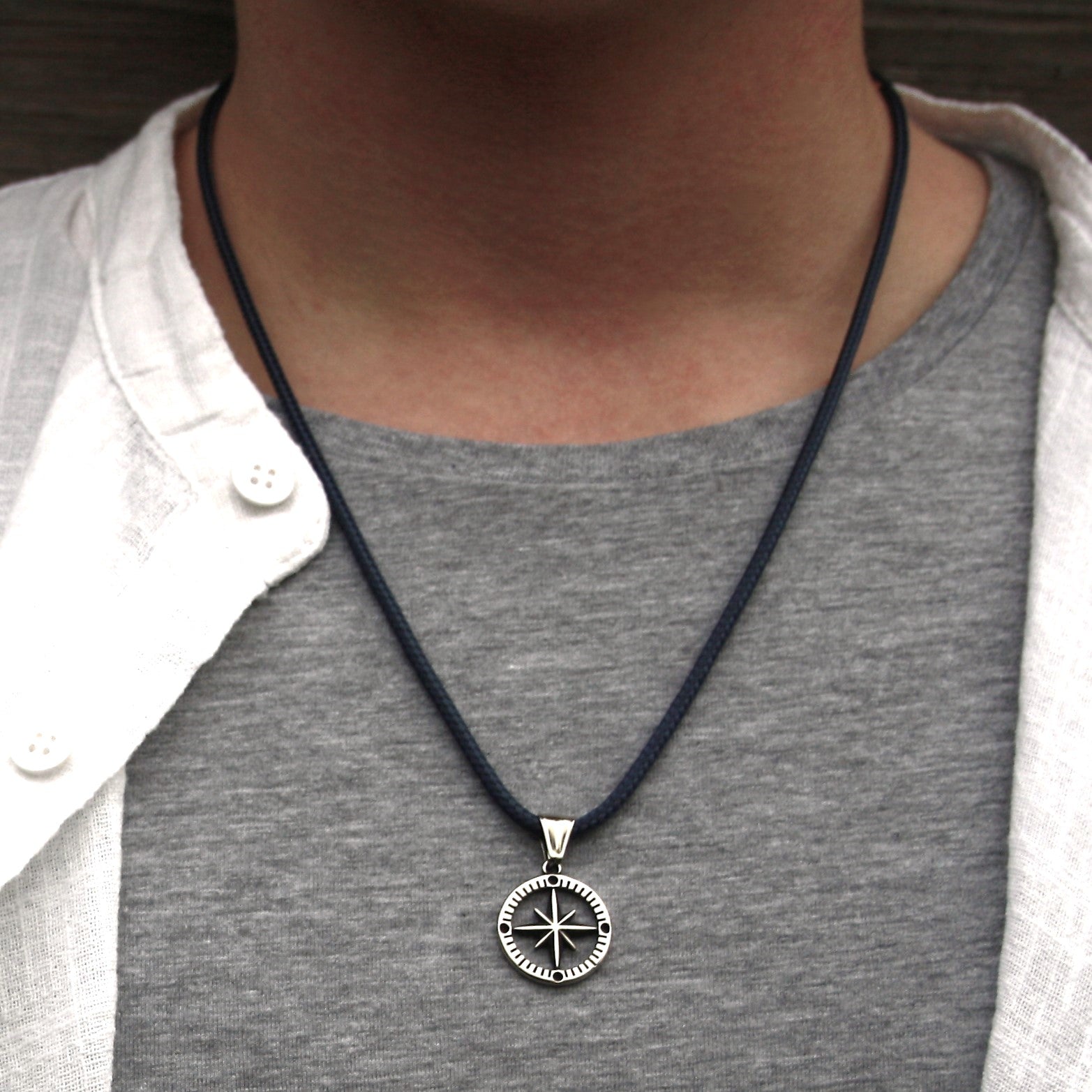 Diese WAVEPIRATE Segeltauhalskette KOMPASS aus einem seefahrterprobten Tau mit 3 mm Durchmesser und dem Edelstahlanhänger der Kompass und Windrose vereint, ist ein Accessoire oder Geschenk für Weltenbummler und alle, die gern in die Ferne schweifen.