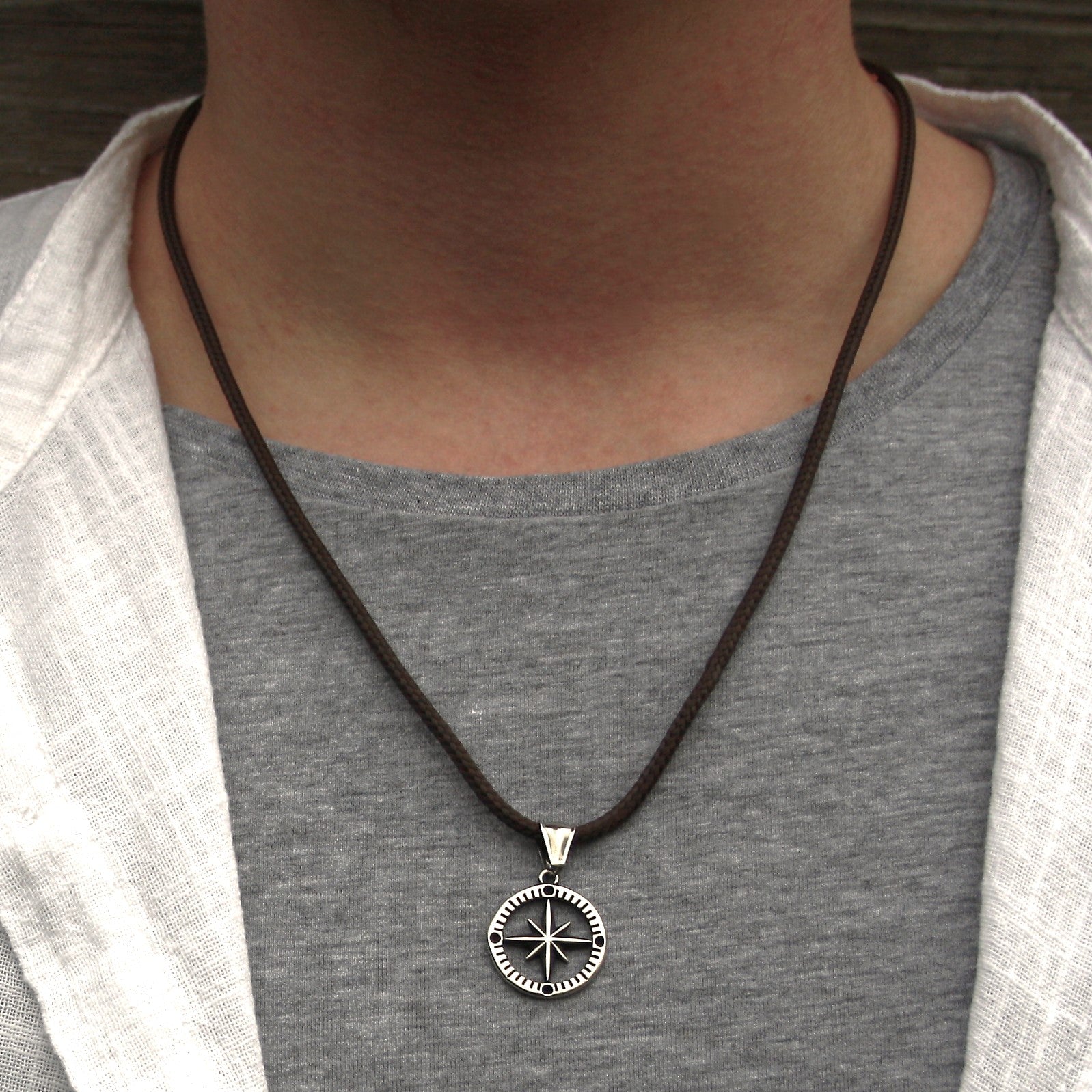 Diese WAVEPIRATE Segeltauhalskette KOMPASS aus einem seefahrterprobten Tau mit 3 mm Durchmesser und dem Edelstahlanhänger der Kompass und Windrose vereint, ist ein Accessoire oder Geschenk für Weltenbummler und alle, die gern in die Ferne schweifen.