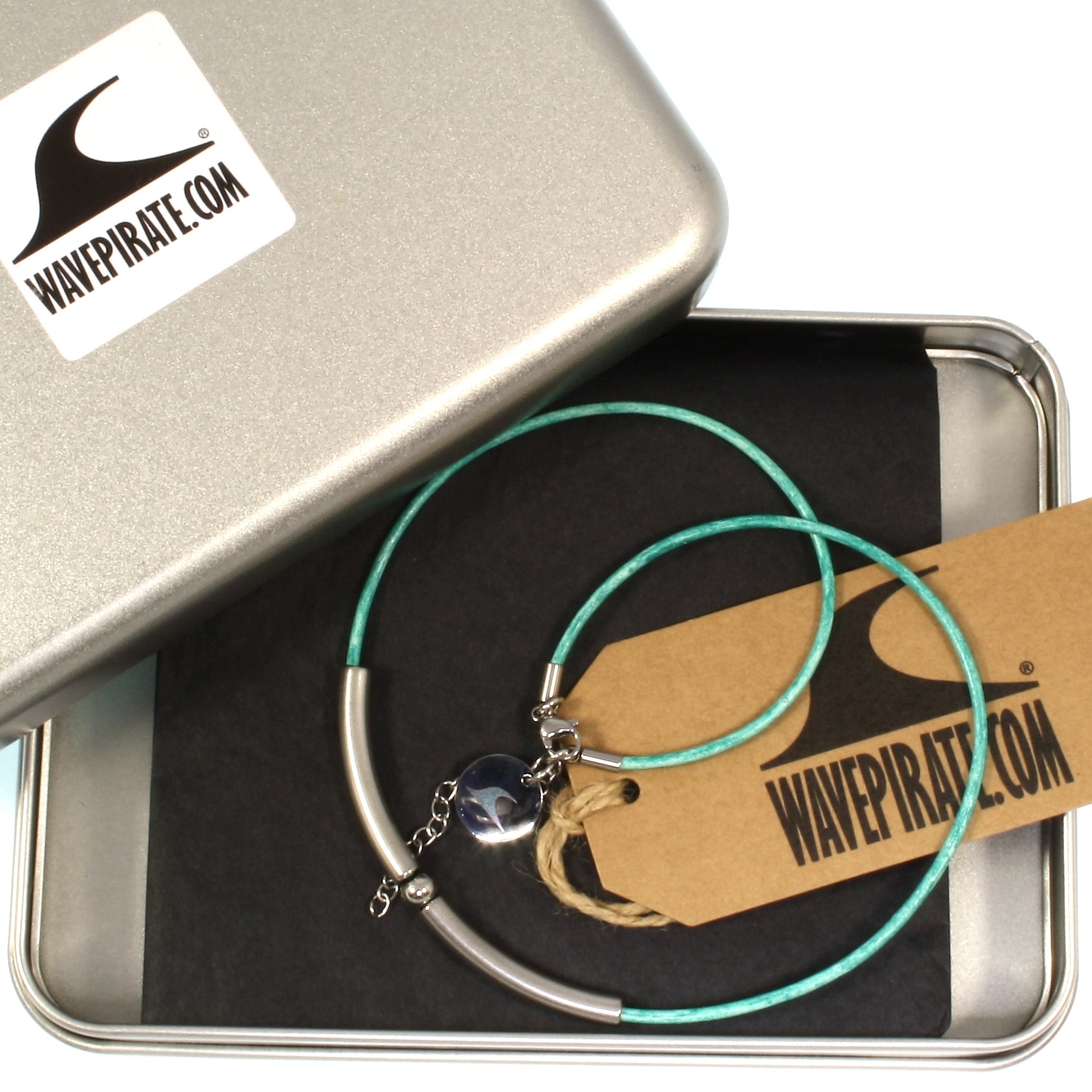 Das Design ist sportlich und elegant zugleich durch die aufgezogenen Edelstahl-Accessoires. Die WAVEPIRATE Halskette DOT aus 2 mm dünnem Lederband spürst Du fast gar nicht.