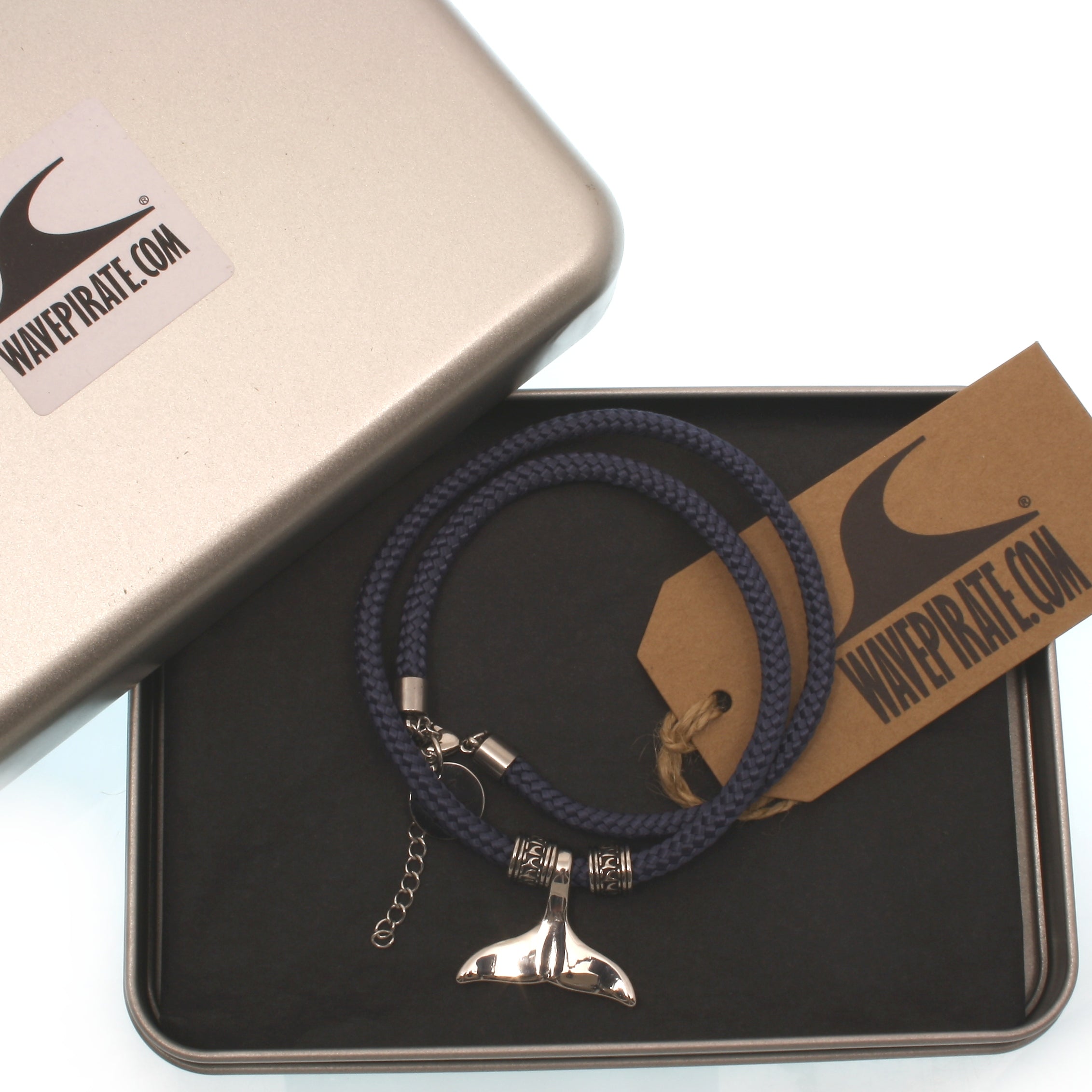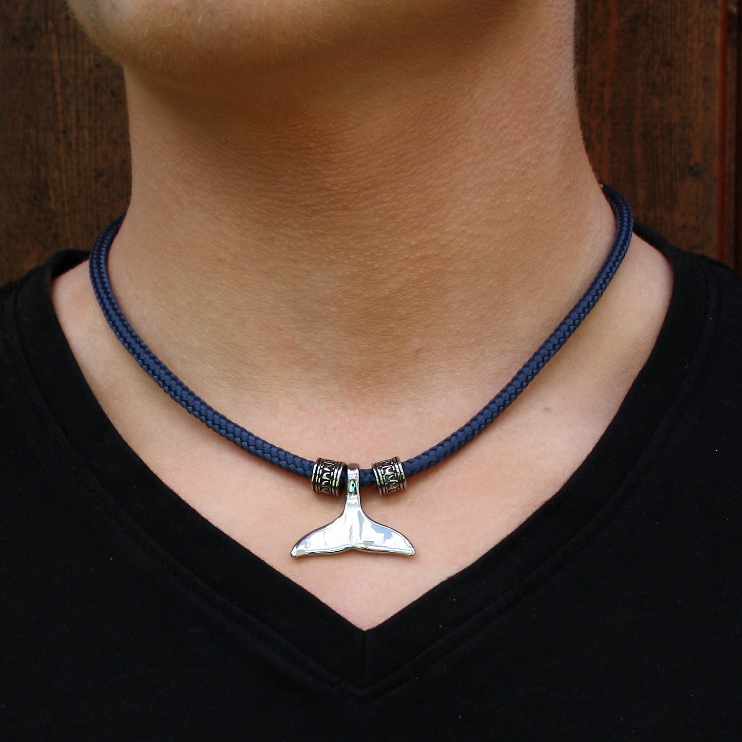 Die Walflosse zwischen den Wellen der Segeltauhalsketten MOBY ist ein Sinnbild für die Weite und den Frieden der Ozeane.